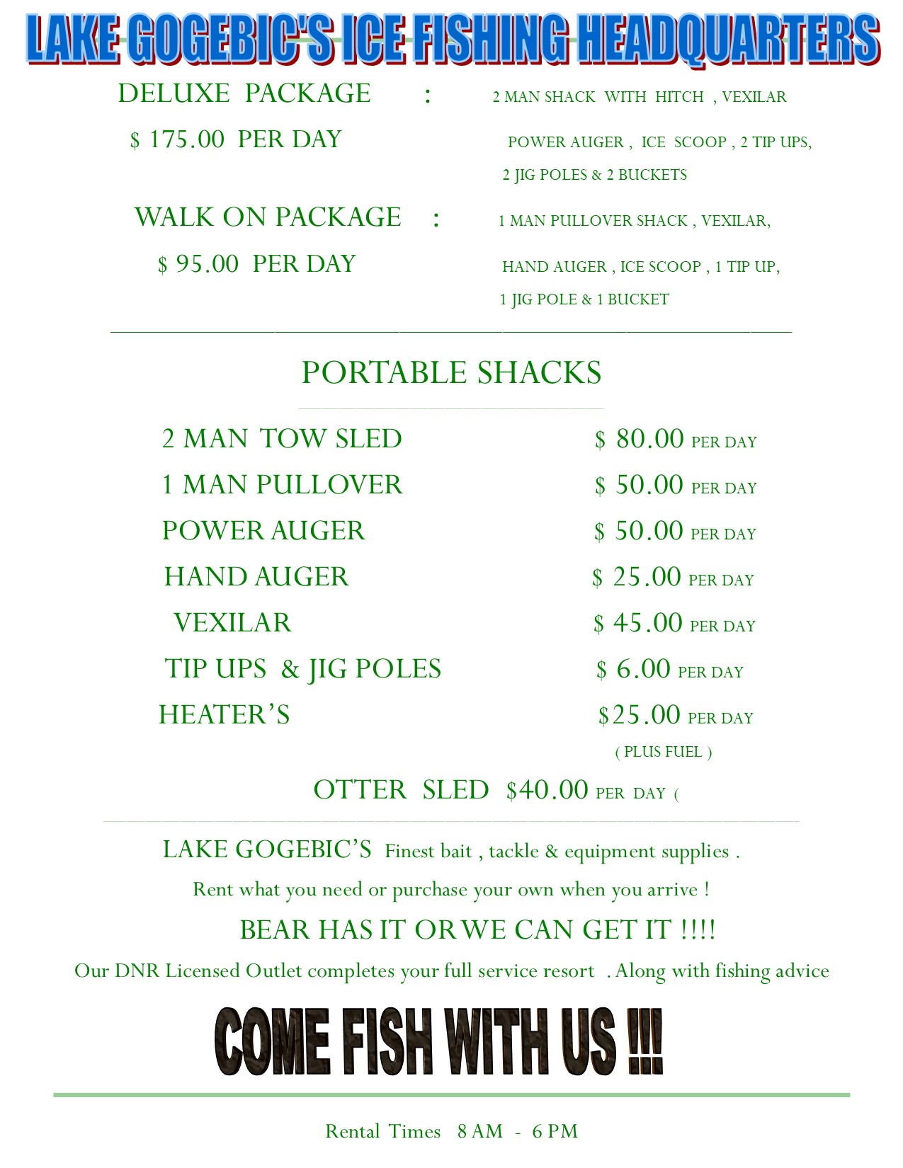 Rentals: Boats, Motors, Pontoons, Equipment, Ice Fishing Equipment