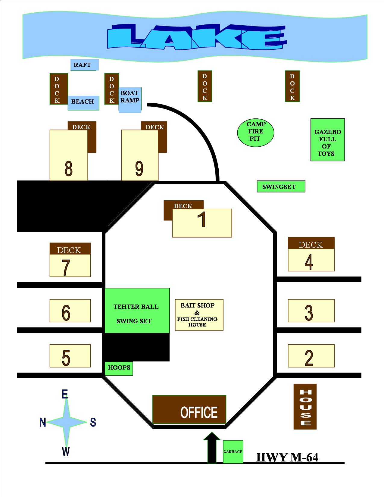 Our Facilities include modern carpeted, one, two and three bedroom cottages. Most things are furnished, Satellite TV, DVDs, cooking and eating utensils, garbage bags, dish soap, toilet paper, coffee filters, salt & pepper & bed linens, (with the exception of your bathroom soaps & towels). We have playground equipment, beach area with a swimming raft, paddle boat (free to our guests to use) a concrete boat ramp, 5 docks, bait shop & year round fish & game cleaning house. Grills, picnic tables, campfire pit, wood is provided, (We even provide the marsh mellows most nights) Private Hot Tubs and air conditioning in cabins #8 & #9.We are a DNR licensing agent, for all of your license and permit needs.
