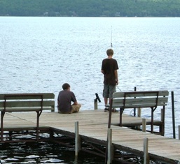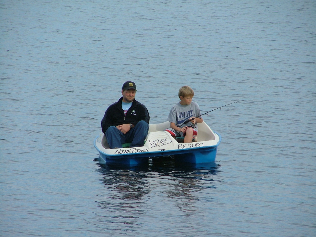 Cody & John doin' a little fishin' Our paddle boat is FREE to use